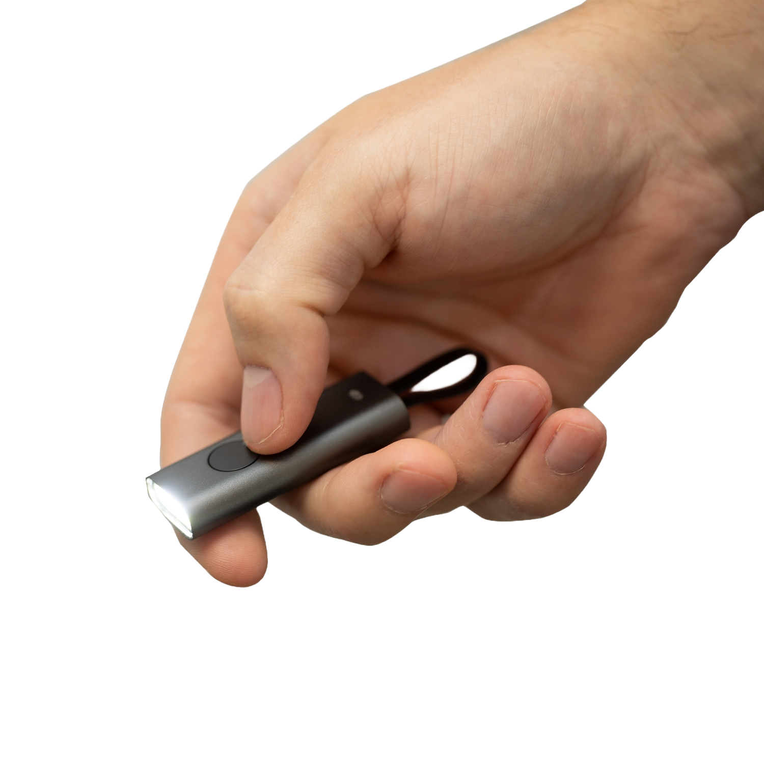 Dimmbare Schlüsselanhängerleuchte mit integriertem USB-Ladekabel