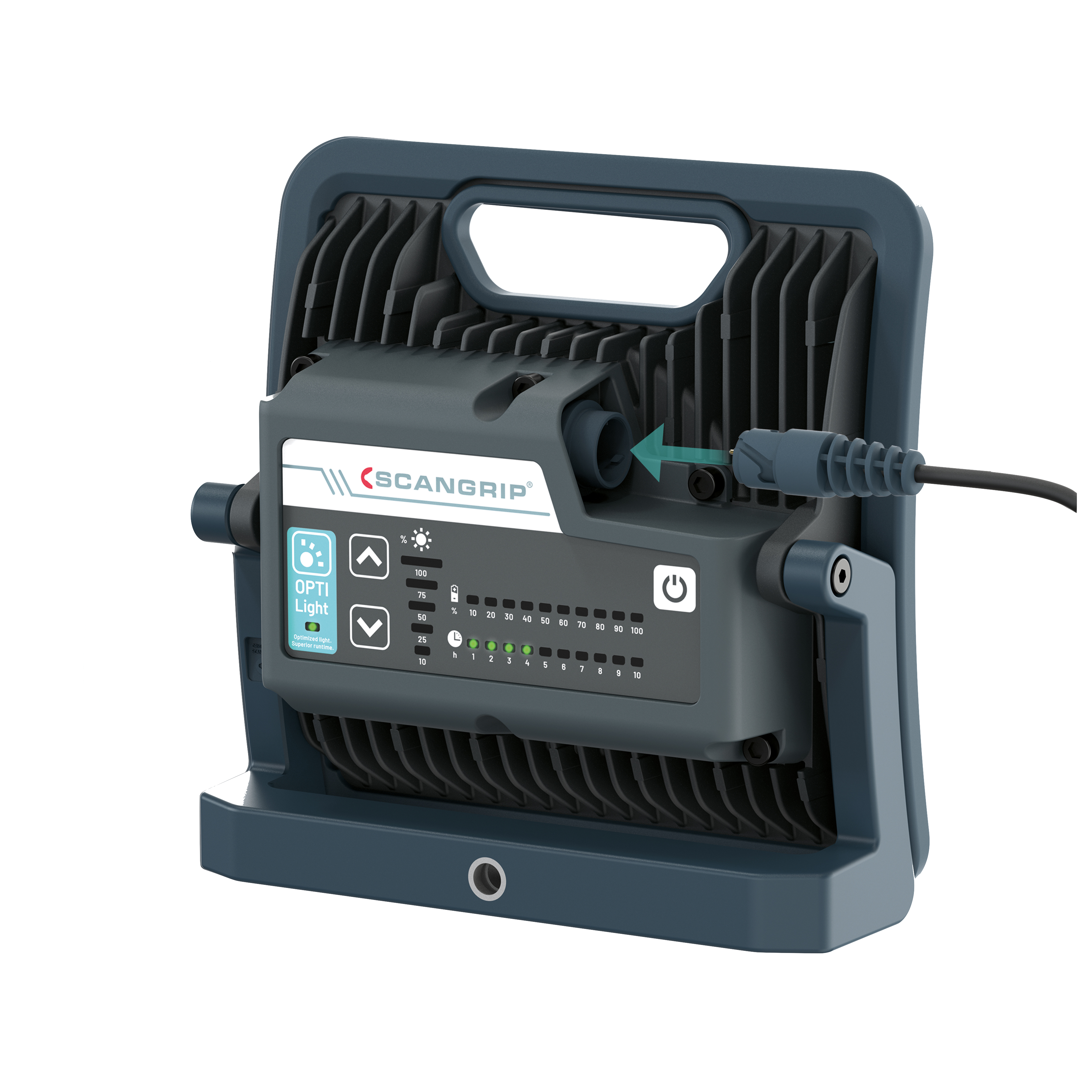 Angetrieben durch ein hocheffizientes Multi-LED-Design mit 90 LEDs bietet NOVA 4 C+R bis zu 4000 Lumen. Neben der Möglichkeit, die Lichtleistung in sechs verschiedenen Stufen einzustellen, verfügt die Arbeitsleuchte über separate Anzeigen für Laufzeit und Akkulaufzeit, sodass die Betriebszeit und verbleibende Akkuleistung einfach verfolgt werden können. Die OPTILight-Einstellung liefert die erforderliche Beleuchtungsstärke (LUX) in einer typischen Arbeitssituation und sorgt mit einem einfachen Druck für optimales Licht und optimale Laufzeit. Diese Arbeitsleuchte bietet eine konstante Lumenleistung, gemessen nach der europäischen Norm EN 13032-1.